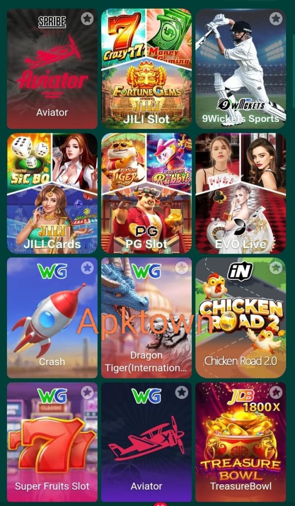 The app is designed with a clean and simple interface, making it easy for users to navigate through games, wallets, and promotions.