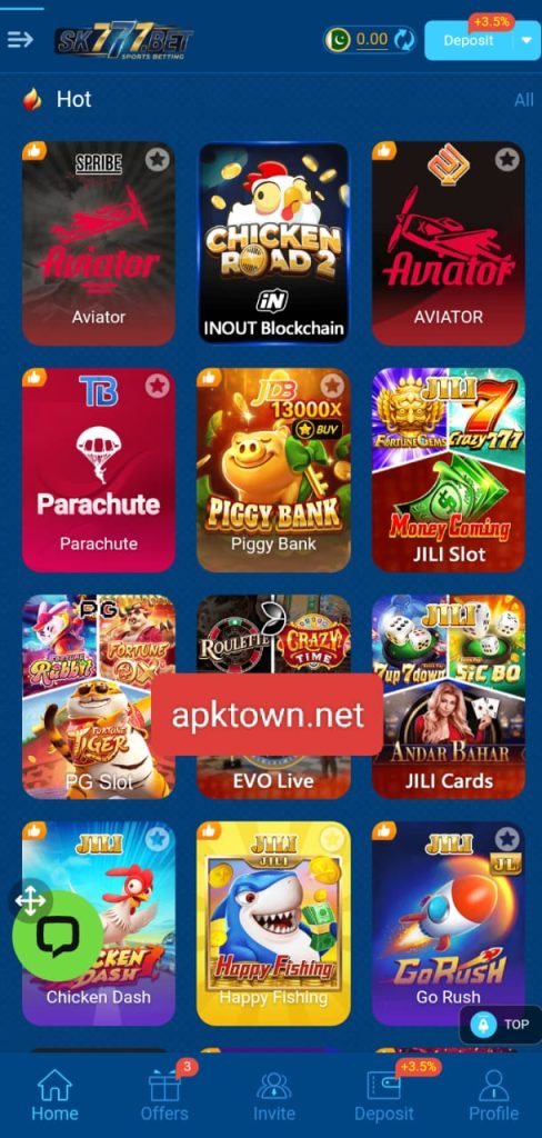 The SK 777Apk interface is clean, simple, and mobile-optimized. Even first-time users can easily navigate games, wallet options, and account settings without confusion.